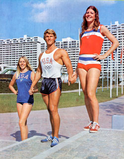 I spent over three weeks in Munich — the week preceding the Games and the 15 days of competition. Much of my time was spent mixing and mingling with the athletes during their training, competition and leisure time activities. During this time, I made many rewarding friendships. Two of my most interesting friendships started at the dinner table one night when I met two of the girls on the American Track and Field team - Deanne Wilson and Sandi Goldsberry. They were both from California and had placed first and second in the National Championships in the High Jump. This was the girl's first trip to Europe and they were enjoying every minute.