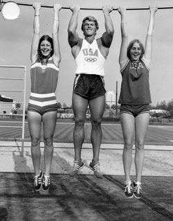 The girls and I continued to exercise together several more times during the week. (This is where I joined in for the photo shoot at the last exercise session. Wayne) Although Deanne and Sandi did not place in the Olympic High Jump competition, you can be sure that they made a good showing. Plus, they've got a bright future ahead since they're just 16 years old.
